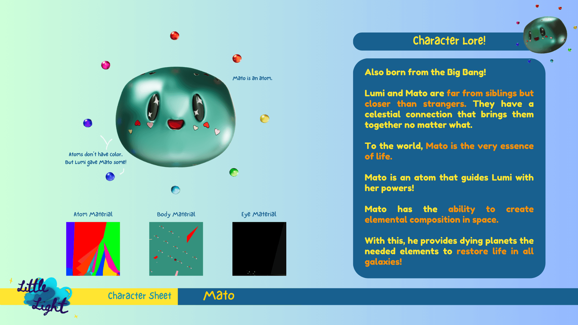I have created a universe where a celestial child, its companion, and planet were born out of the Big Bang! Explore their story below! Created using Autodesk Maya. Unfortunately, the process on how this was produced was not recorded in any way.