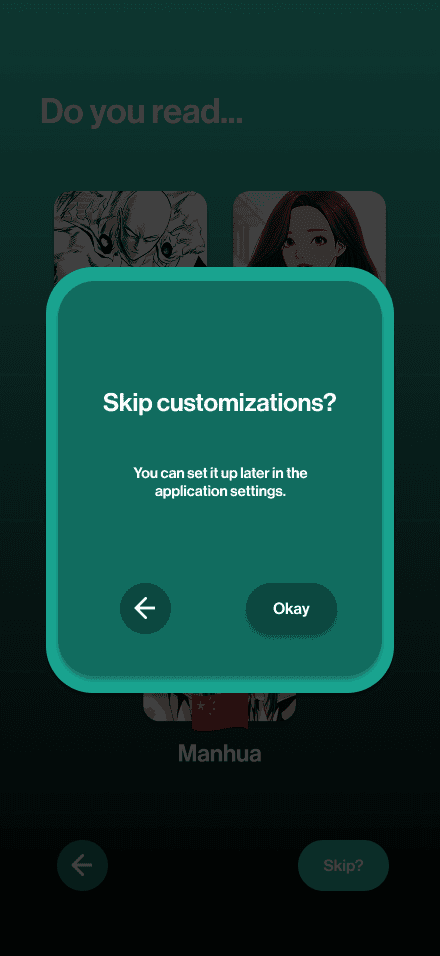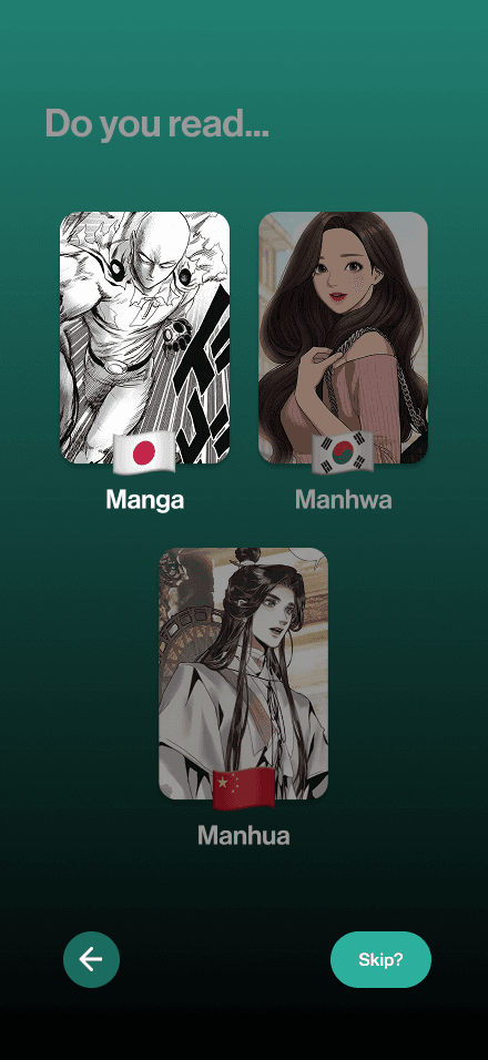 Hanwa empowers users to tailor their reading experience through customizable themes, color palettes, preferred genres, and Asian comic formats including manga, manhwa, and manhua. Customization is optional, enabling seamless onboarding without compromising personalization depth.