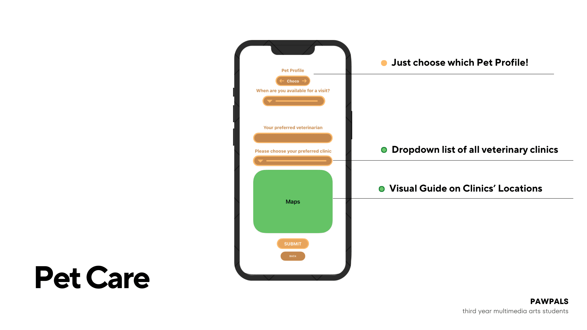 Pawpal is a pet wellness and care management app designed to centralize health tracking, veterinary coordination, and lifestyle support. It connects pet owners with registered clinics, streamlining records, appointments, and reminders to ensure proactive, informed, and stress-free pet care.